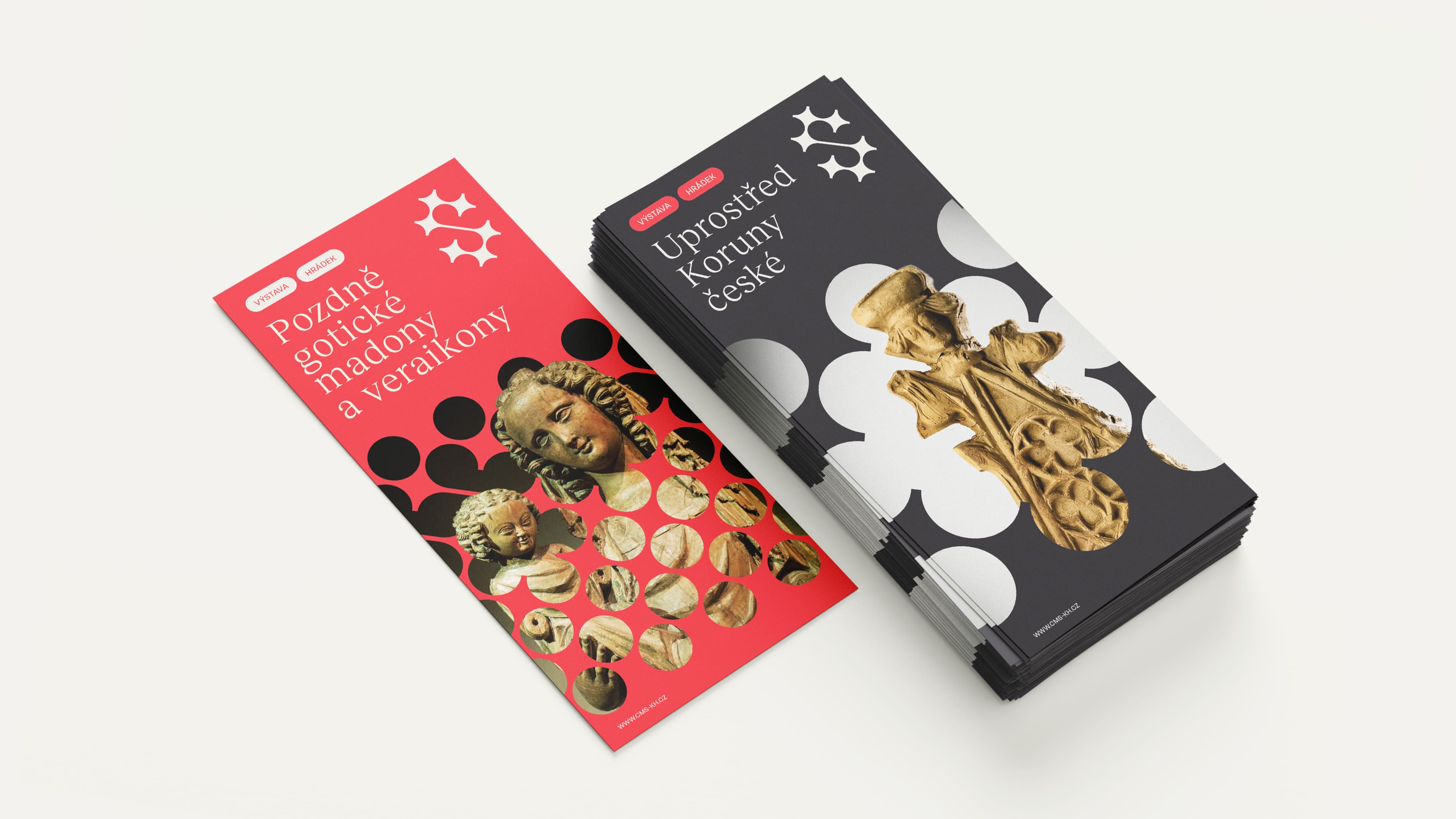 Identita dále pracuje s kontrastem moderního bezpatkového a elegantního patkového písma, střídmou barevností šedých tónů doplněných sytou modří a výrazným korálovým akcentem. Výsledkem je výrazný flexibilní vizuální systém vytvořený s respektem k místu i jeho příběhu, využitelný napříč tiskovinami, webem, expozicemi i další komunikací muzea.